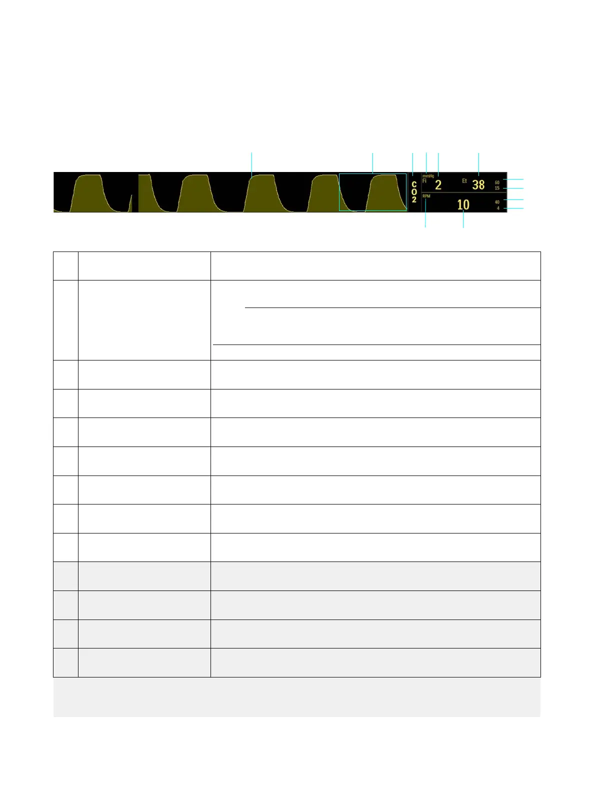 11 Respiration rate numeric Is the patient’s detected respiration rate measurement, as derived from CO2