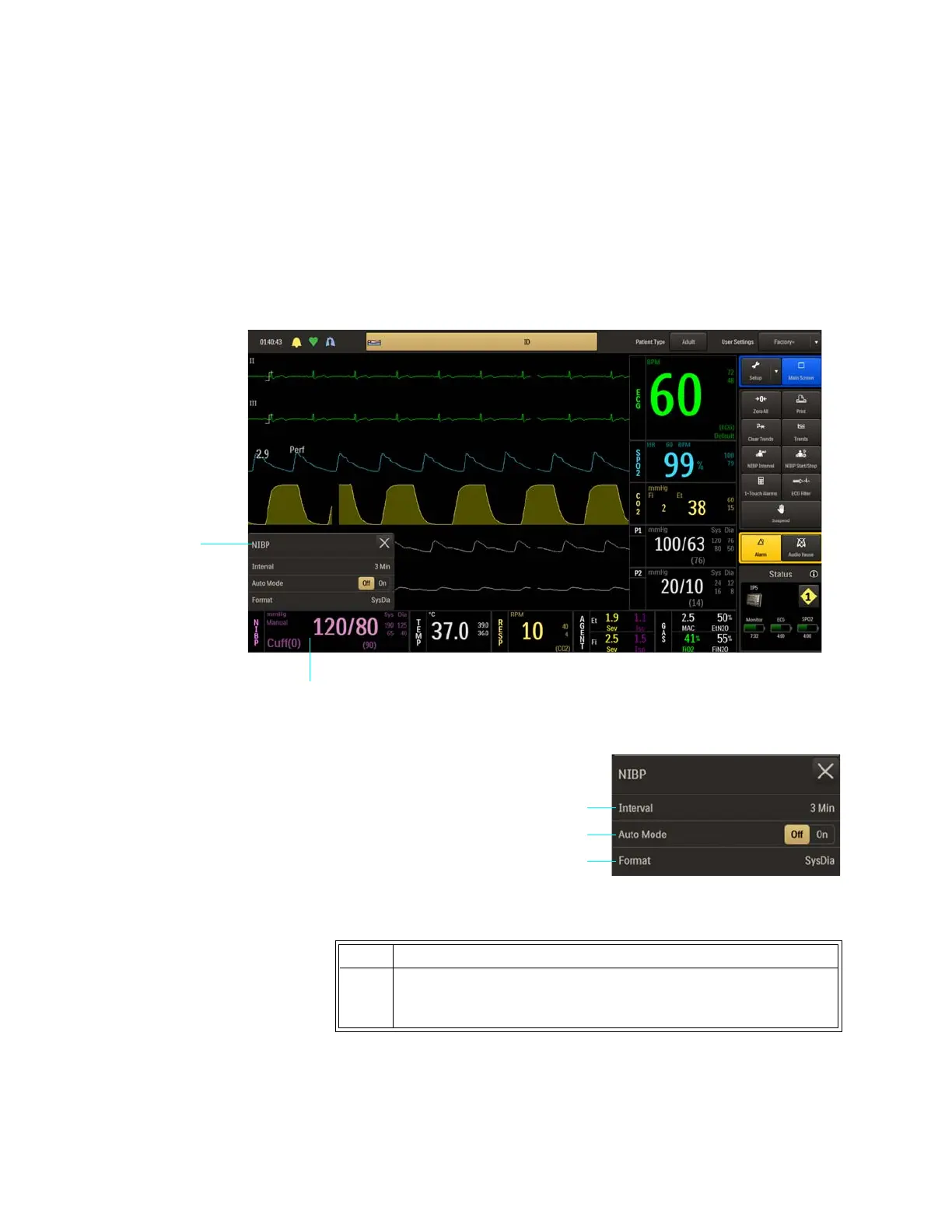 TheNIBPmenuappears.Currentsettingsaredisplayed.