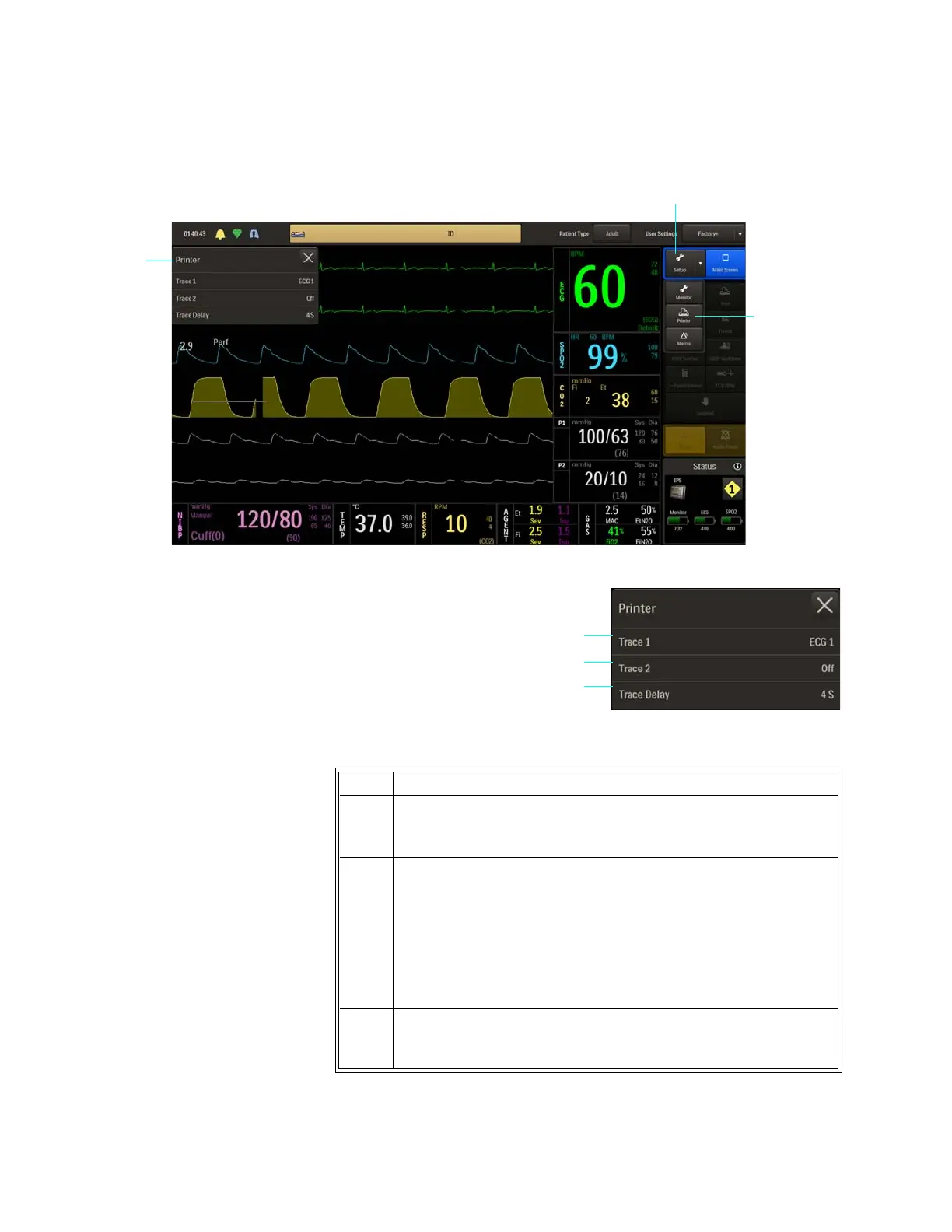 ThePrintermenuappears.Currentsettingsaredisplayed.