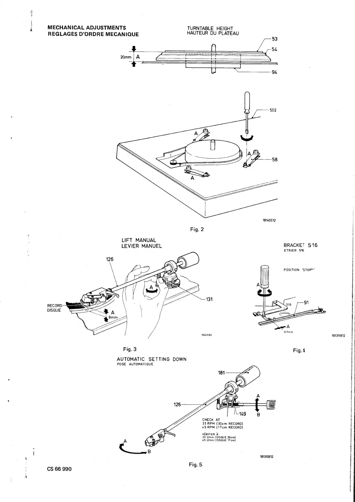 Philips F 7215 - MECHANICAL ADJUSTMENTS; TURNTABLE HEIGHT; LIFT MANUAL; AUTOMATIC SETTING DOWN