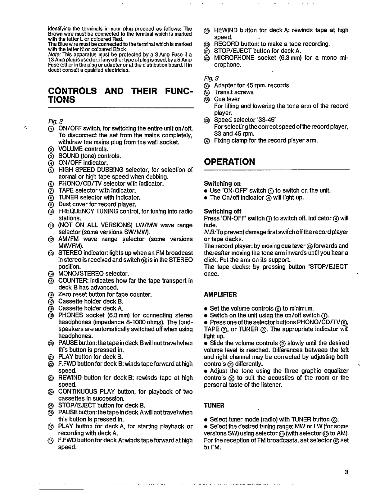 Philips F1275 - Controls and Functions; Main Controls; Cassette Deck Controls; Record Player Controls
