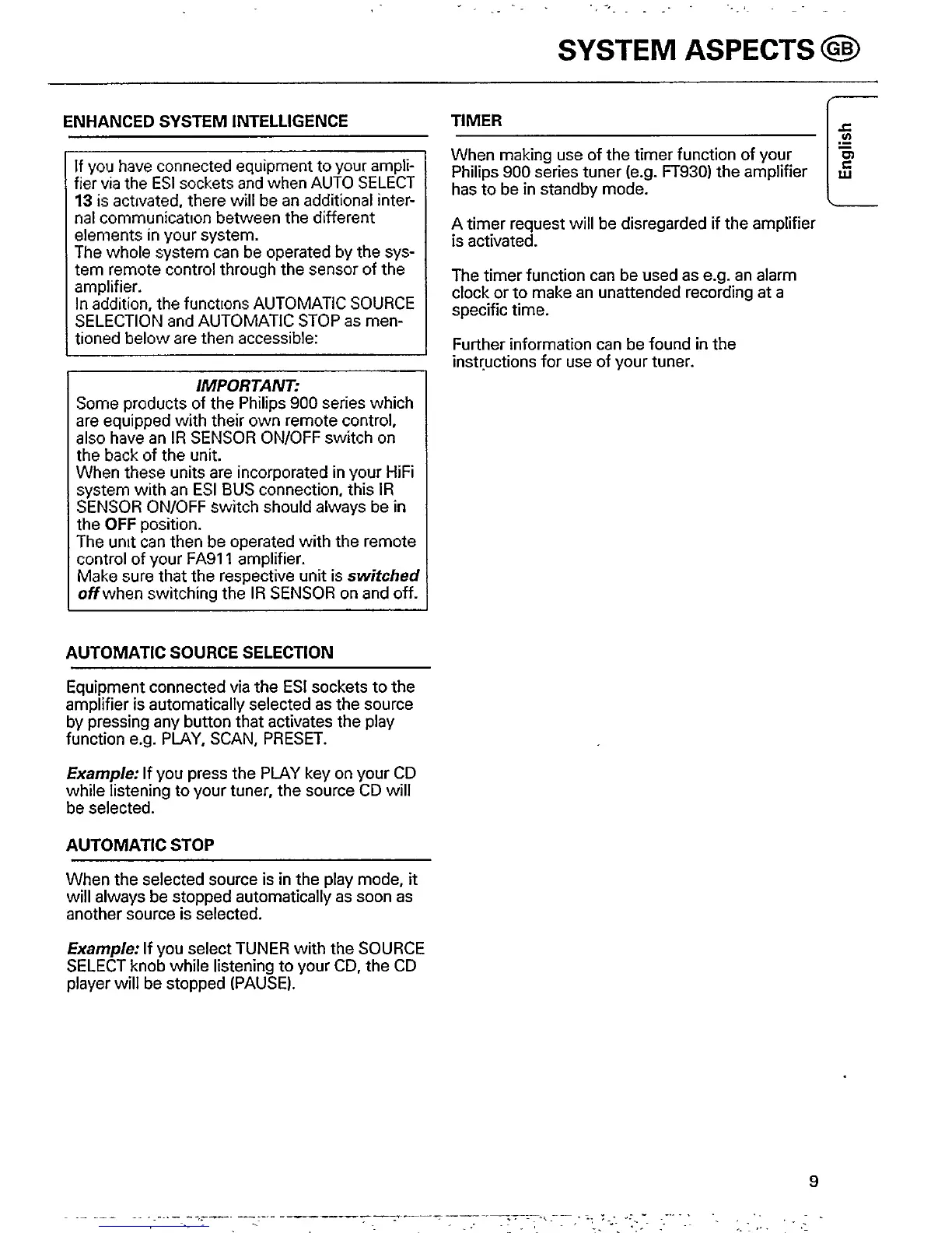 Philips FA 911 - System Aspects; Enhanced System Intelligence; Automatic Source Selection; Automatic Stop