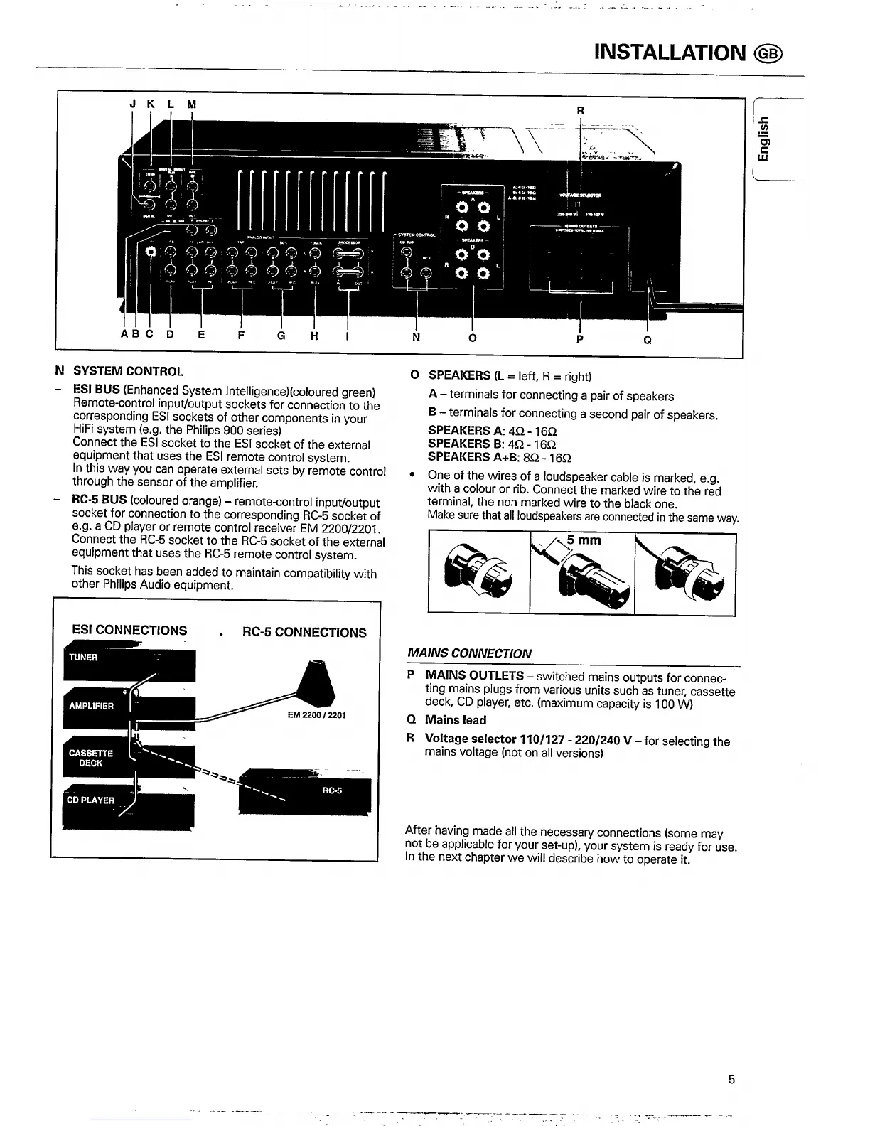 Philips FA 951 - System Installation and Control; System Control Interfaces; Speaker Connections; Power and Voltage Settings