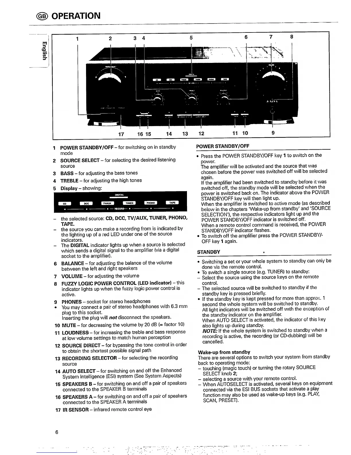 Philips FA 951 - Amplifier Operation; Front Panel Overview; Power and Source Management; Audio Adjustments and Features