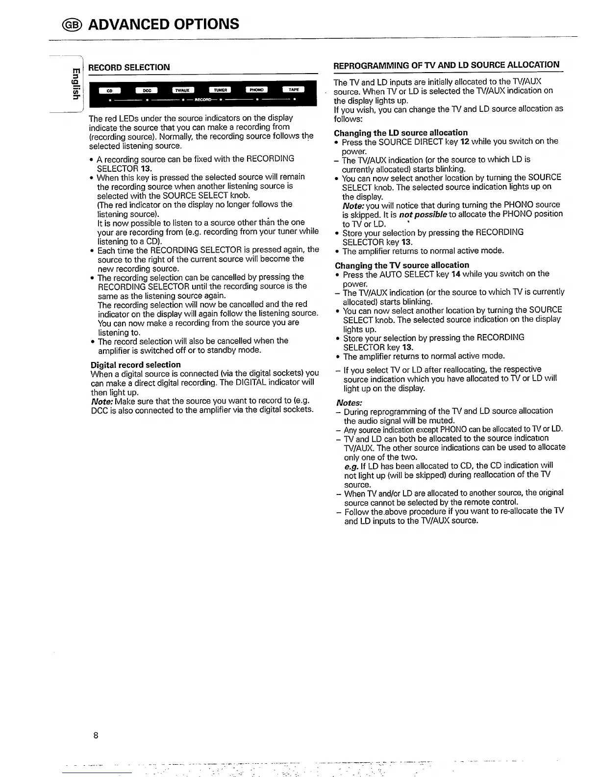 Philips FA 951 - Advanced Options; Recording Source Management; TV and LD Source Reprogramming