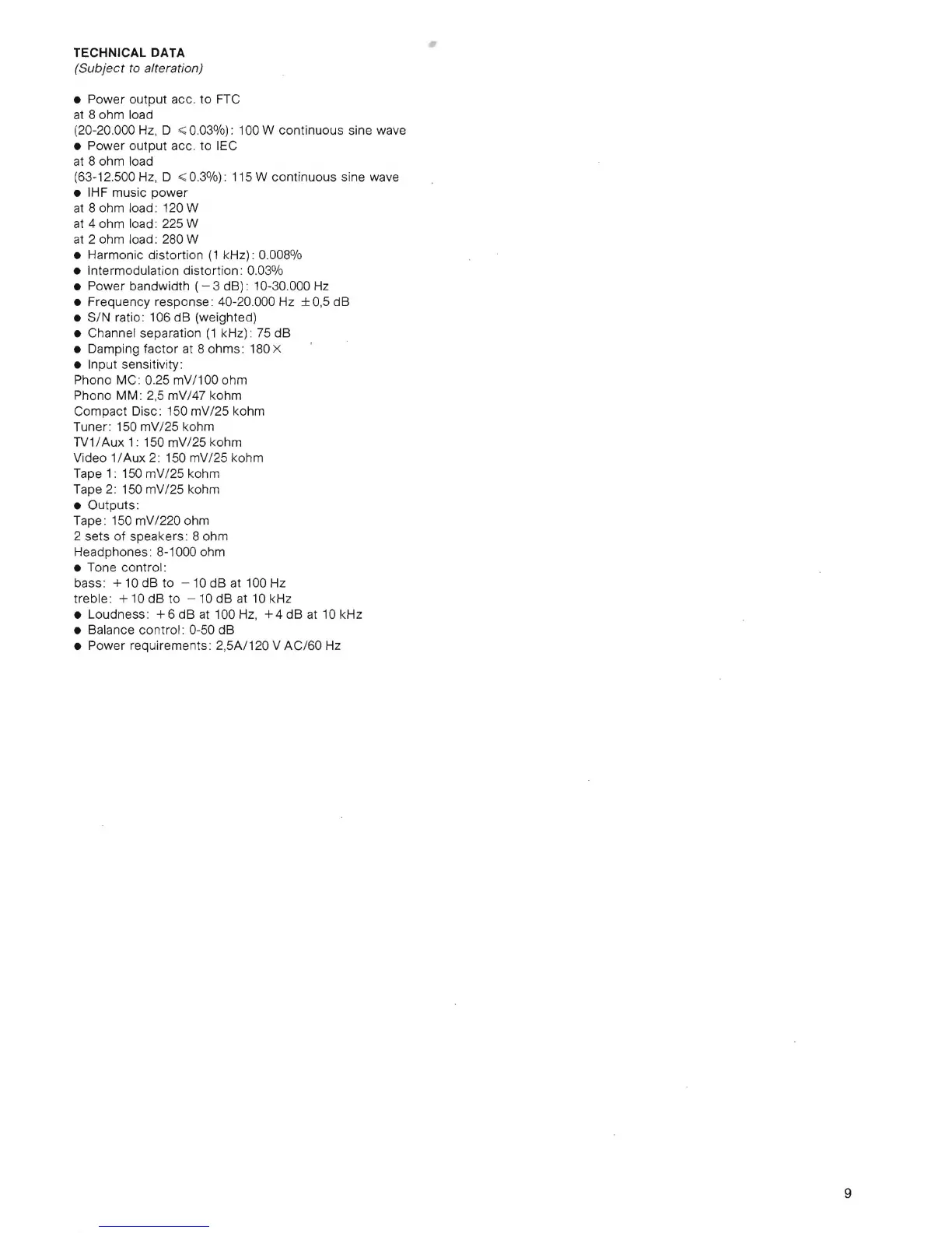 0,03%): 100 W continuous sine wave