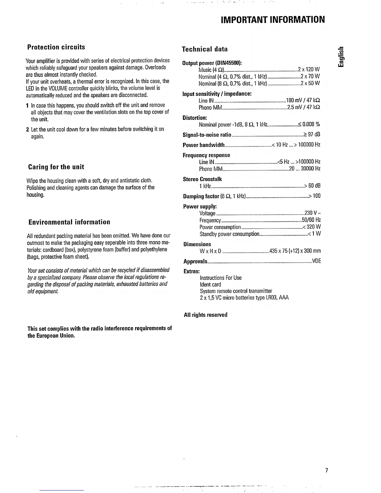 Philips FA761 - Important Information; Protection circuits and overheating; Caring for the unit; Environmental and disposal information