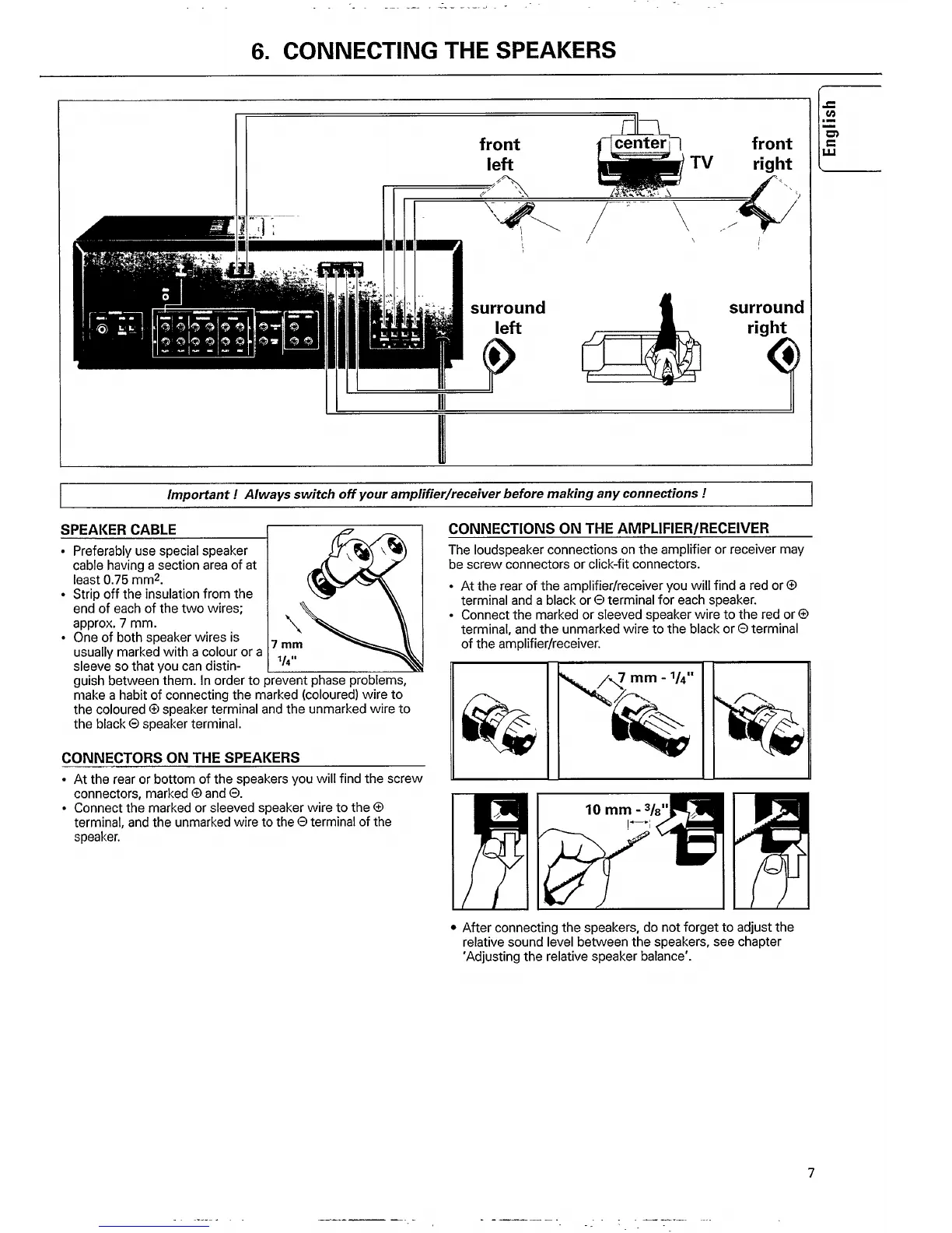 Philips FB 603/00 - Connecting Your Philips Speakers; Speaker Cable Selection and Connection; Speaker Terminal Connections; Amplifier;Receiver Connections