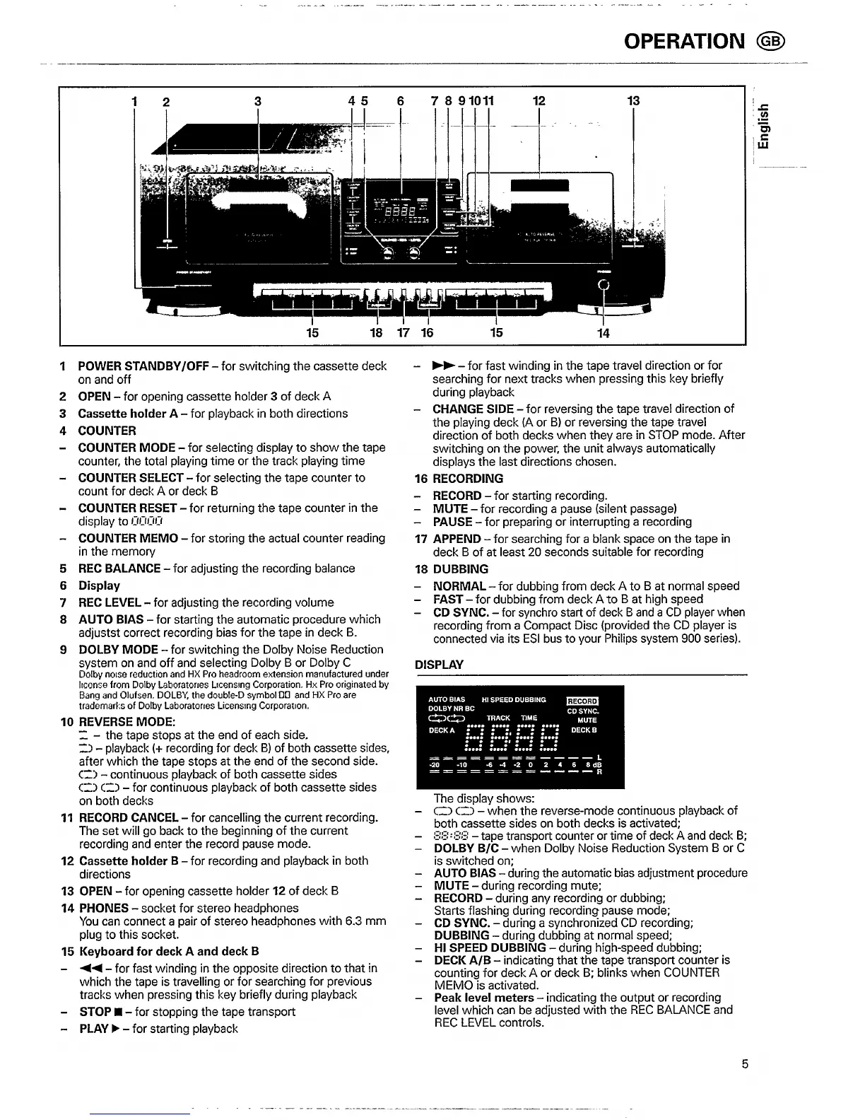 Philips FC 931 - Philips FC931 Cassette Deck Operation: Controls and Display; Cassette Deck Controls Overview; Display Indicators Explained