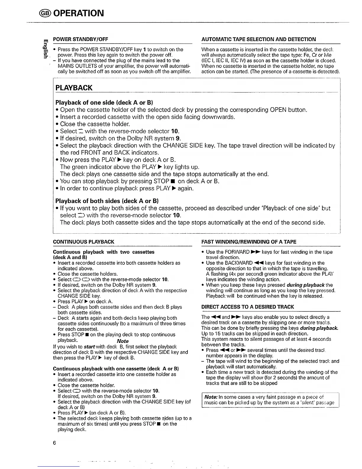 Philips FC 931 - Philips FC931 Cassette Deck Operation: Playback and Tape Handling; Playback Modes and Tape Handling