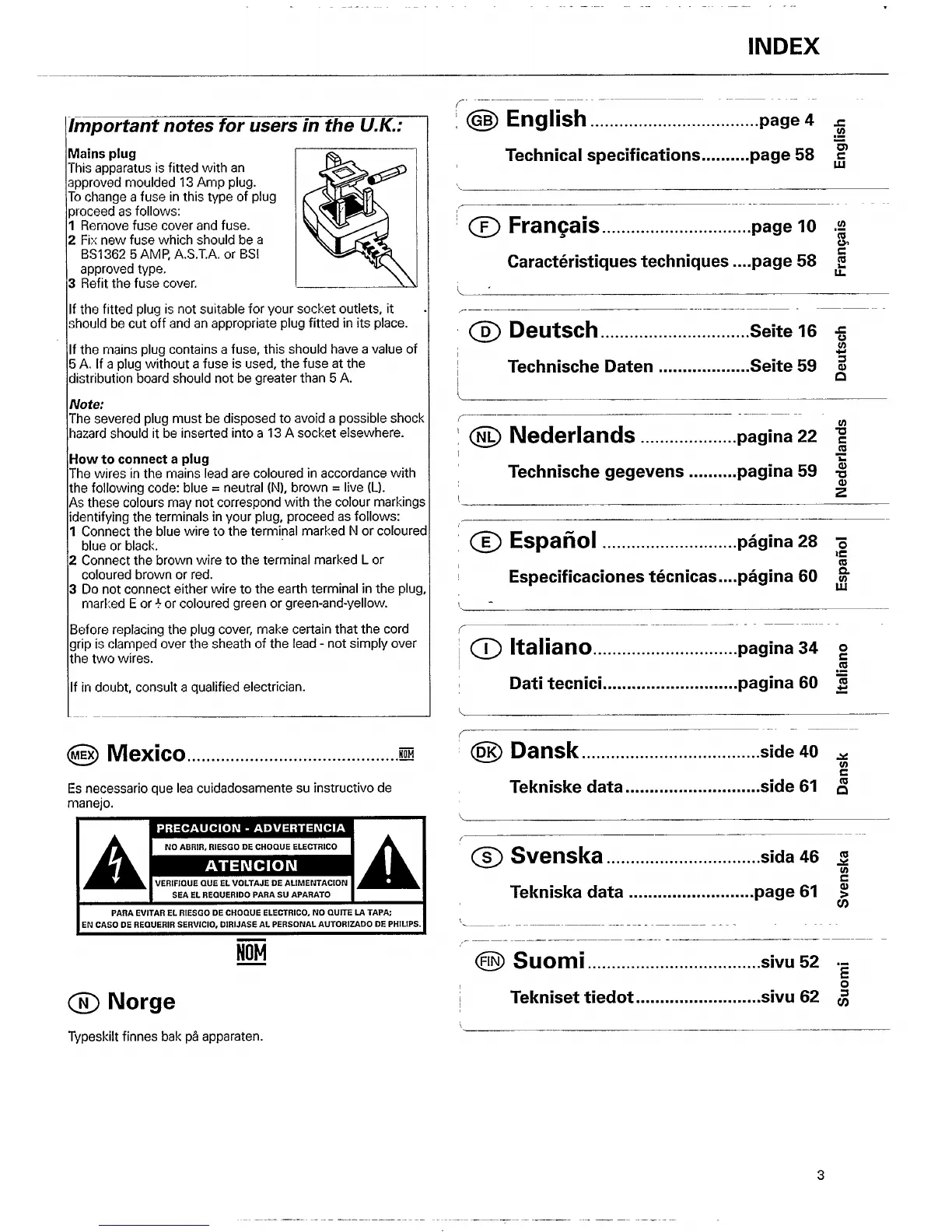 Philips FC 931 - Important Usage Notes; UK Mains Plug and Connection Notes