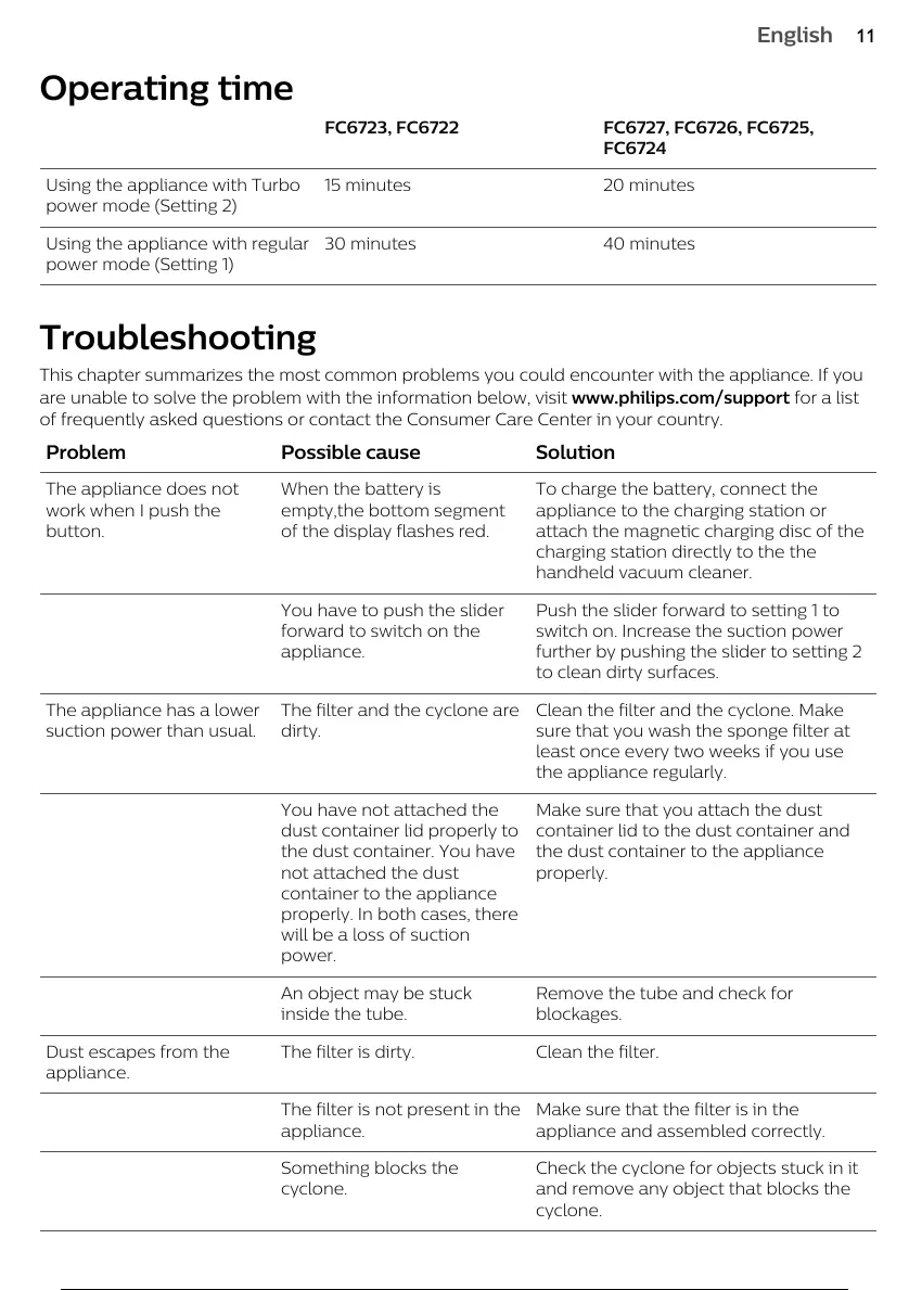 are unable to solve the problem with the information below, visit www.philips.com/support for a list