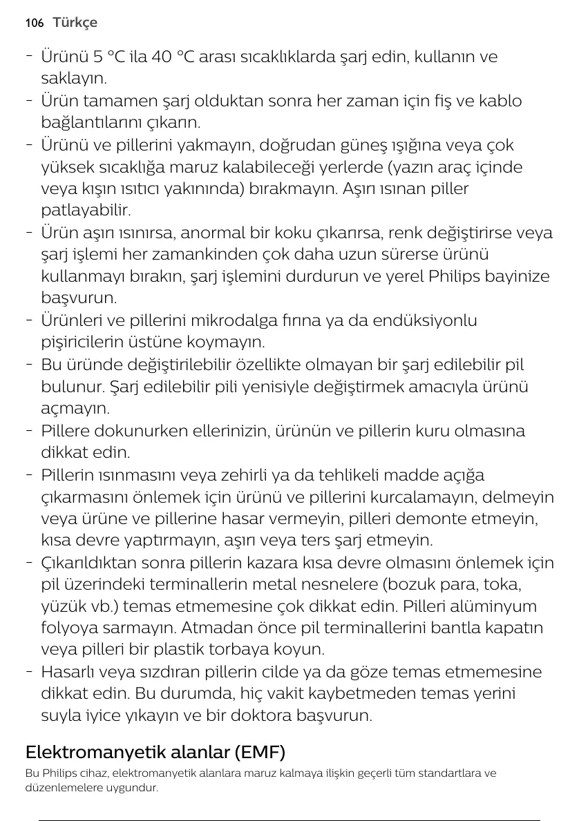 Bu Philips cihaz, elektromanyetik alanlara maruz kalmaya ilişkin geçerli tüm standartlara ve