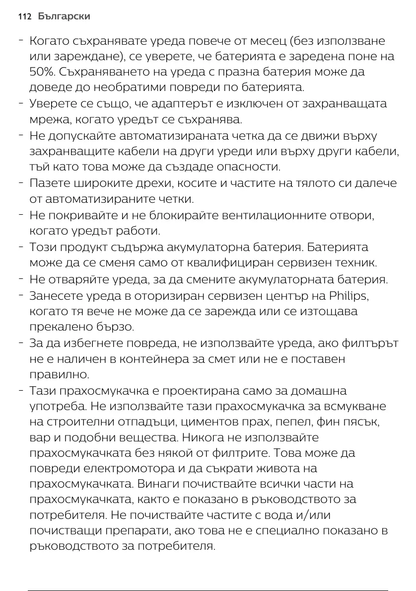 употреба. Не използвайте тази прахосмукачка за всмукване
