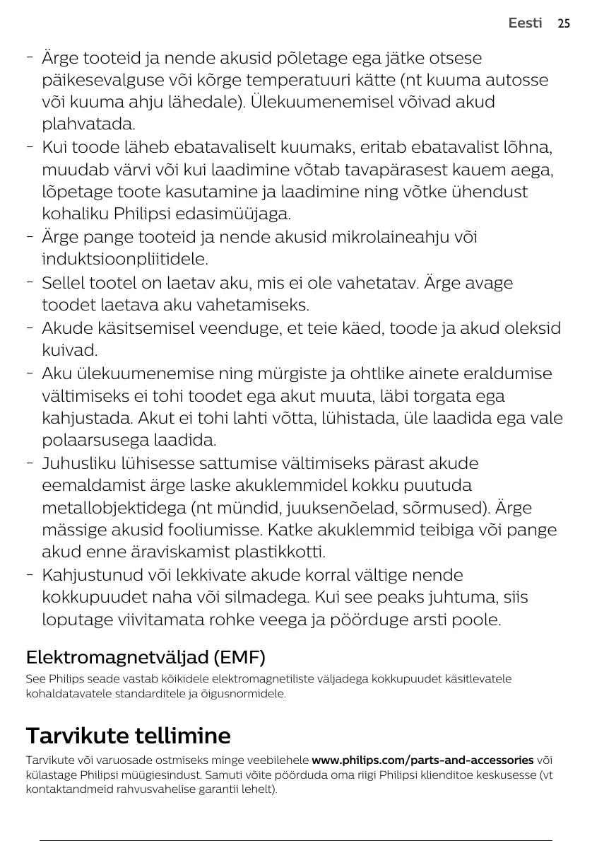 Tarvikute või varuosade ostmiseks minge veebilehele www.philips.com/parts-and-accessories või