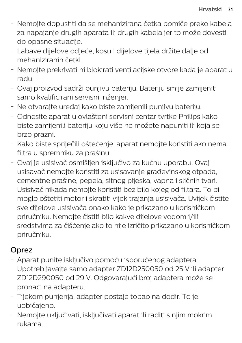 Upotrebljavajte samo adapter ZD12D250050 od 25 V ili adapter