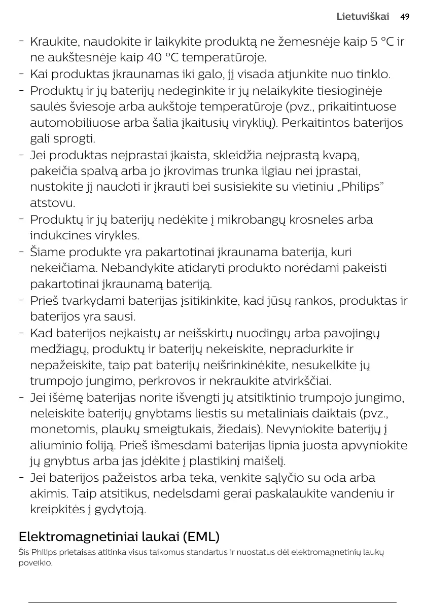 Šis Philips prietaisas atitinka visus taikomus standartus ir nuostatus dėl elektromagnetinių laukų