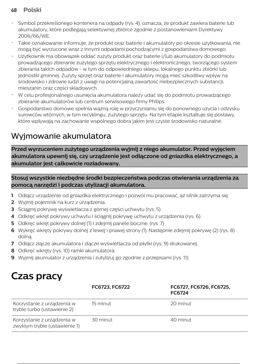 9 Wyjmij akumulator z urządzenia i zutylizuj go zgodnie z przepisami (rys. 11).