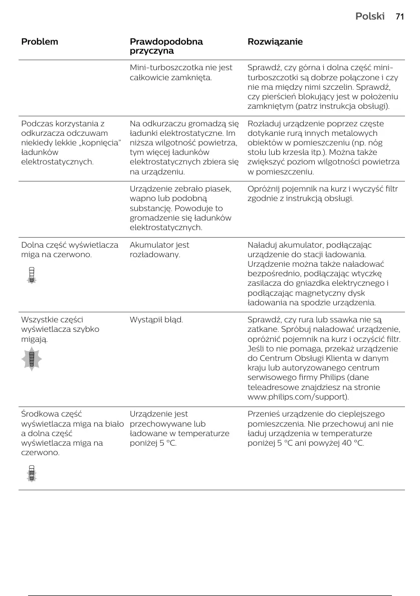 Wystąpił błąd. Sprawdź, czy rura lub ssawka nie są