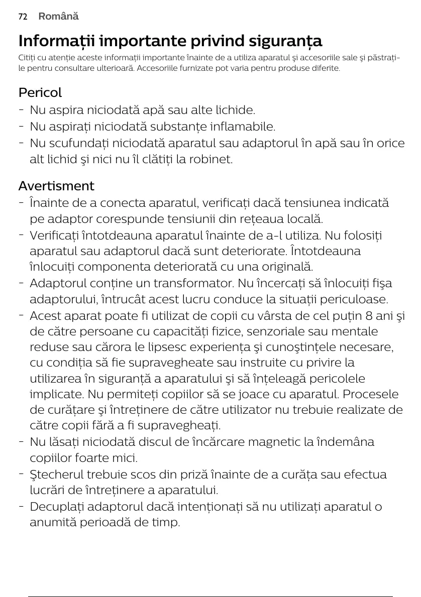 Citiţi cu atenţie aceste informaţii importante înainte de a utiliza aparatul şi accesoriile sale şi păstraţi-