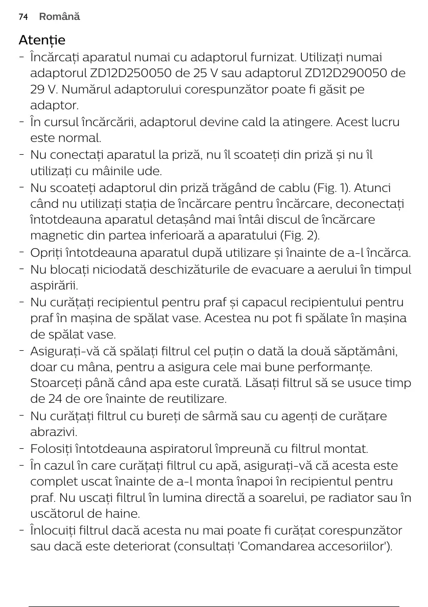 Nu scoateți adaptorul din priză trăgând de cablu (Fig. 1). Atunci