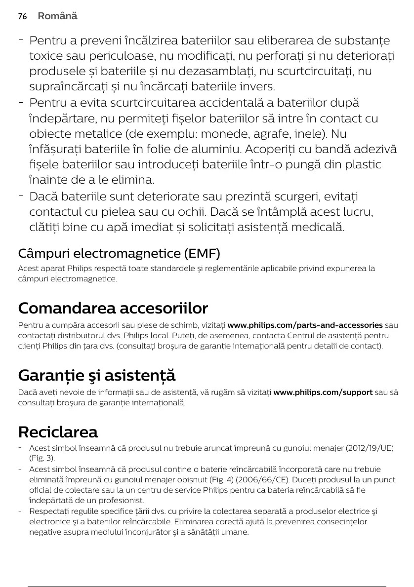 eliminată împreună cu gunoiul menajer obișnuit (Fig. 4) (2006/66/CE). Duceți produsul la un punct