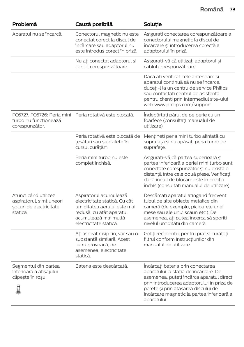 Bateria este descărcată. Încărcați bateria prin conectarea