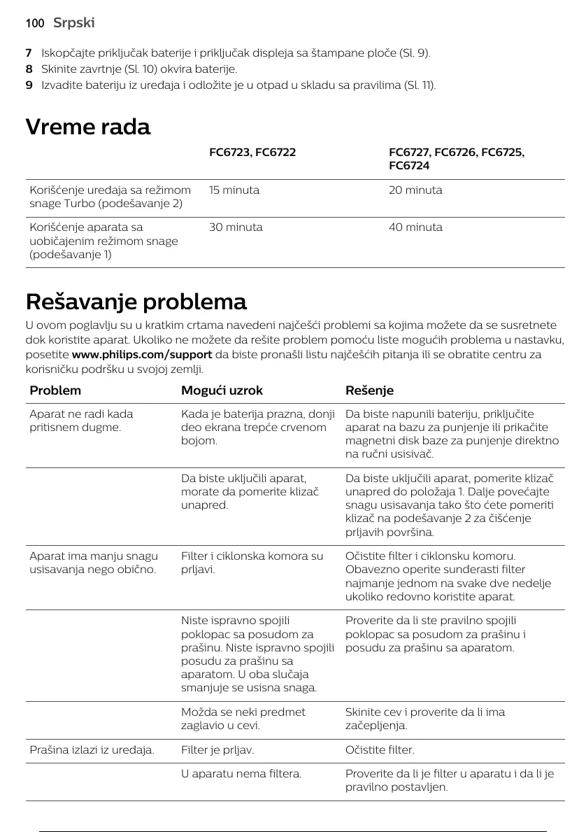 9 Izvadite bateriju iz uređaja i odložite je u otpad u skladu sa pravilima (Sl. 11).
