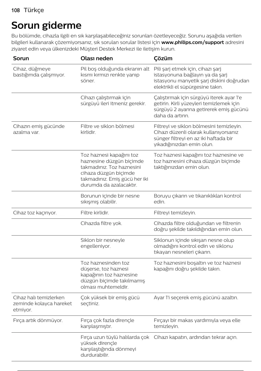 bilgileri kullanarak çözemiyorsanız, sık sorulan sorular listesi için www.philips.com/support adresini
