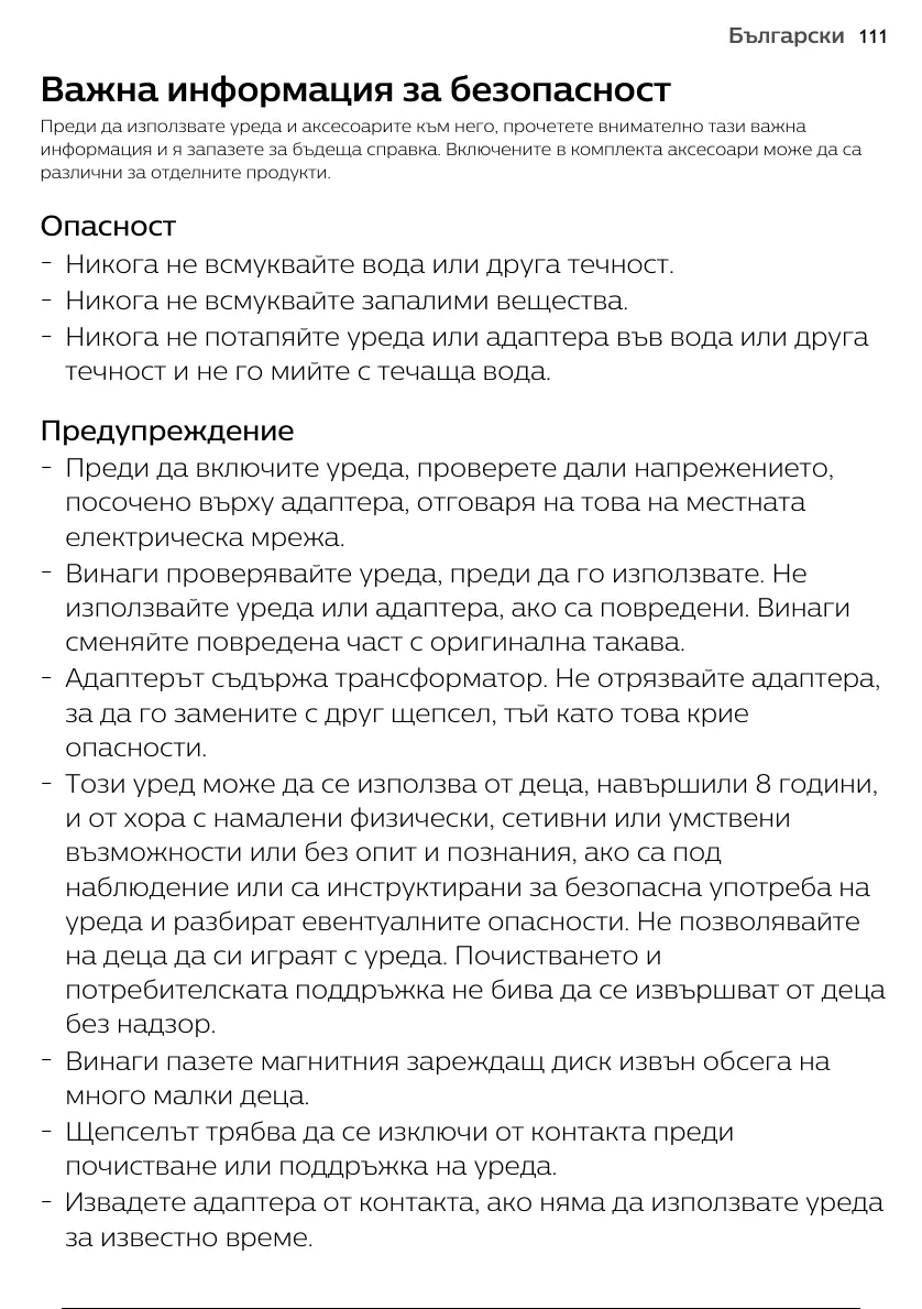 Преди да използвате уреда и аксесоарите към него, прочетете внимателно тази важна