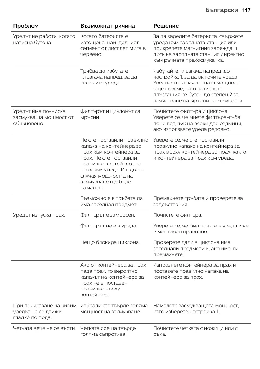 Уредът изпуска прах. Филтърът е замърсен. Почистете филтъра.