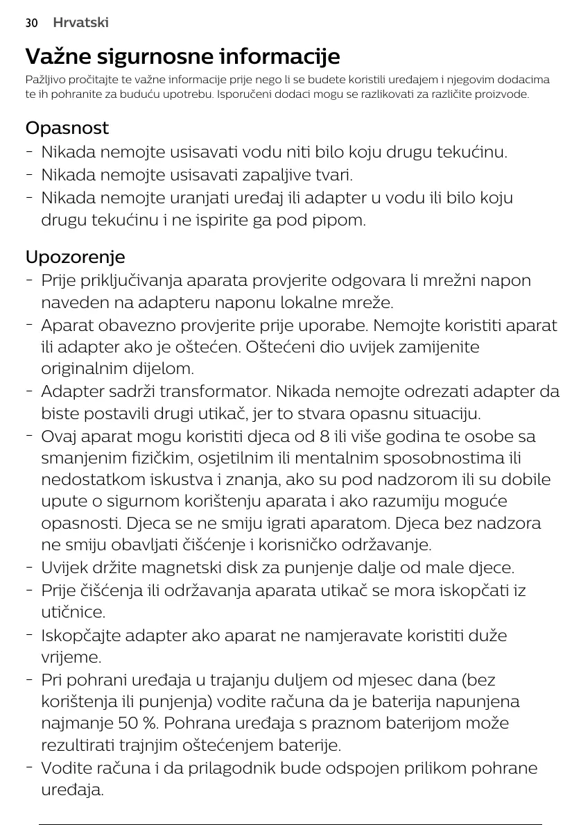 Pažljivo pročitajte te važne informacije prije nego li se budete koristili uređajem i njegovim dodacima