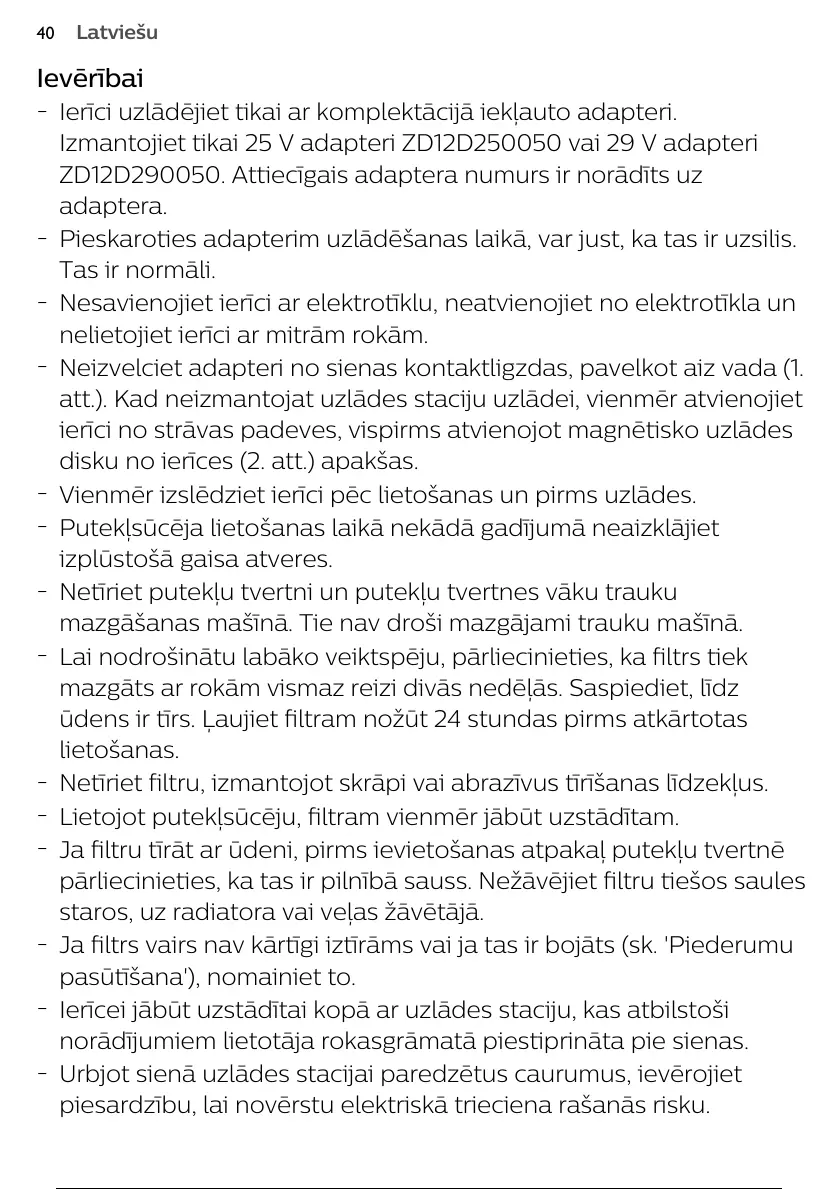 Izmantojiet tikai 25V adapteri ZD12D250050 vai 29V adapteri