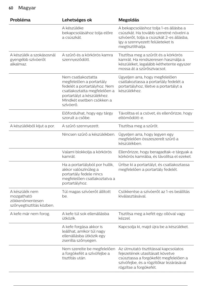 A készülékből kijut a por. A szűrő szennyezett. Tisztítsa meg a szűrőt.