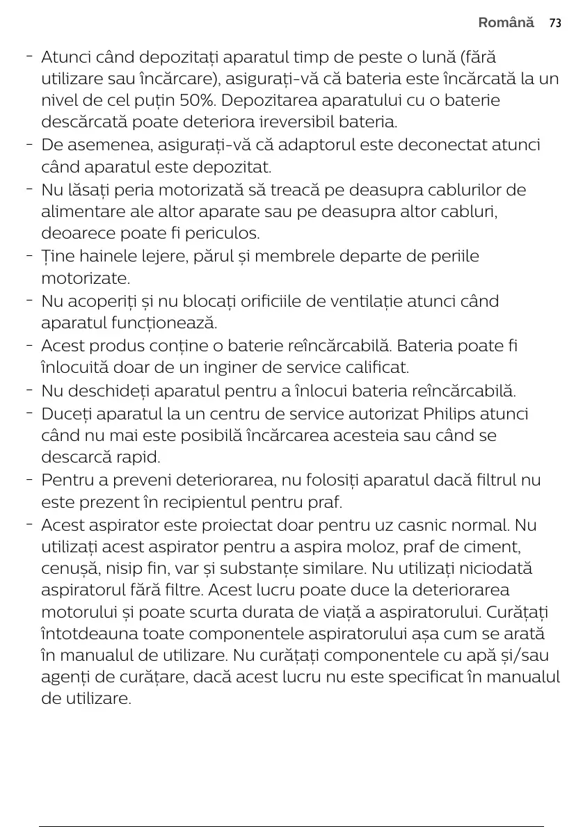 nivel de cel puțin 50%. Depozitarea aparatului cu o baterie