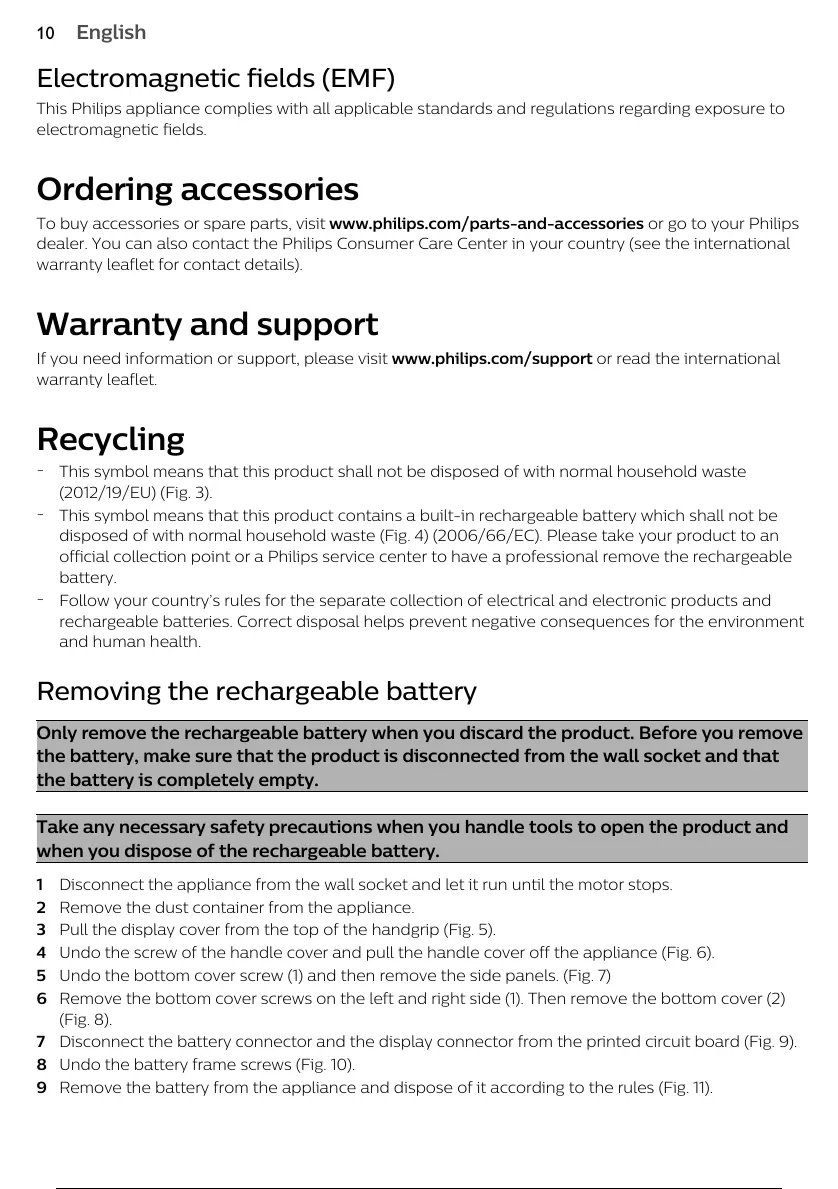 official collection point or a Philips service center to have a professional remove the rechargeable