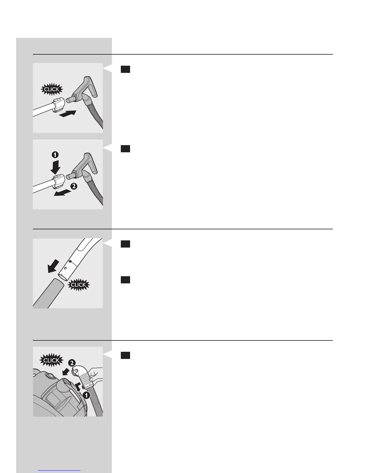 (1) et poussez le raccord du tuyau vers le bas (clic) (2).