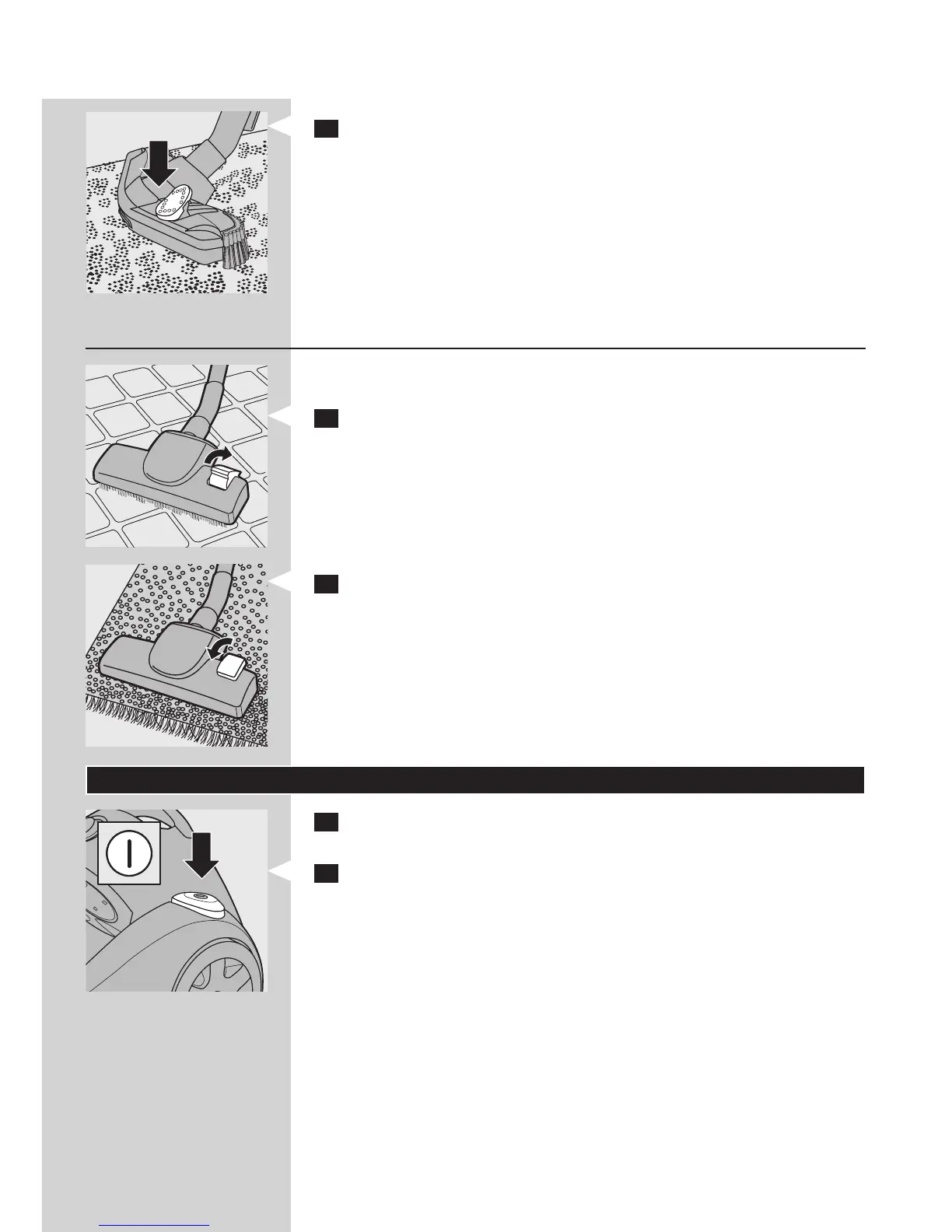 1 Per pulire i pavimenti duri, premete con il piede l’interruttore