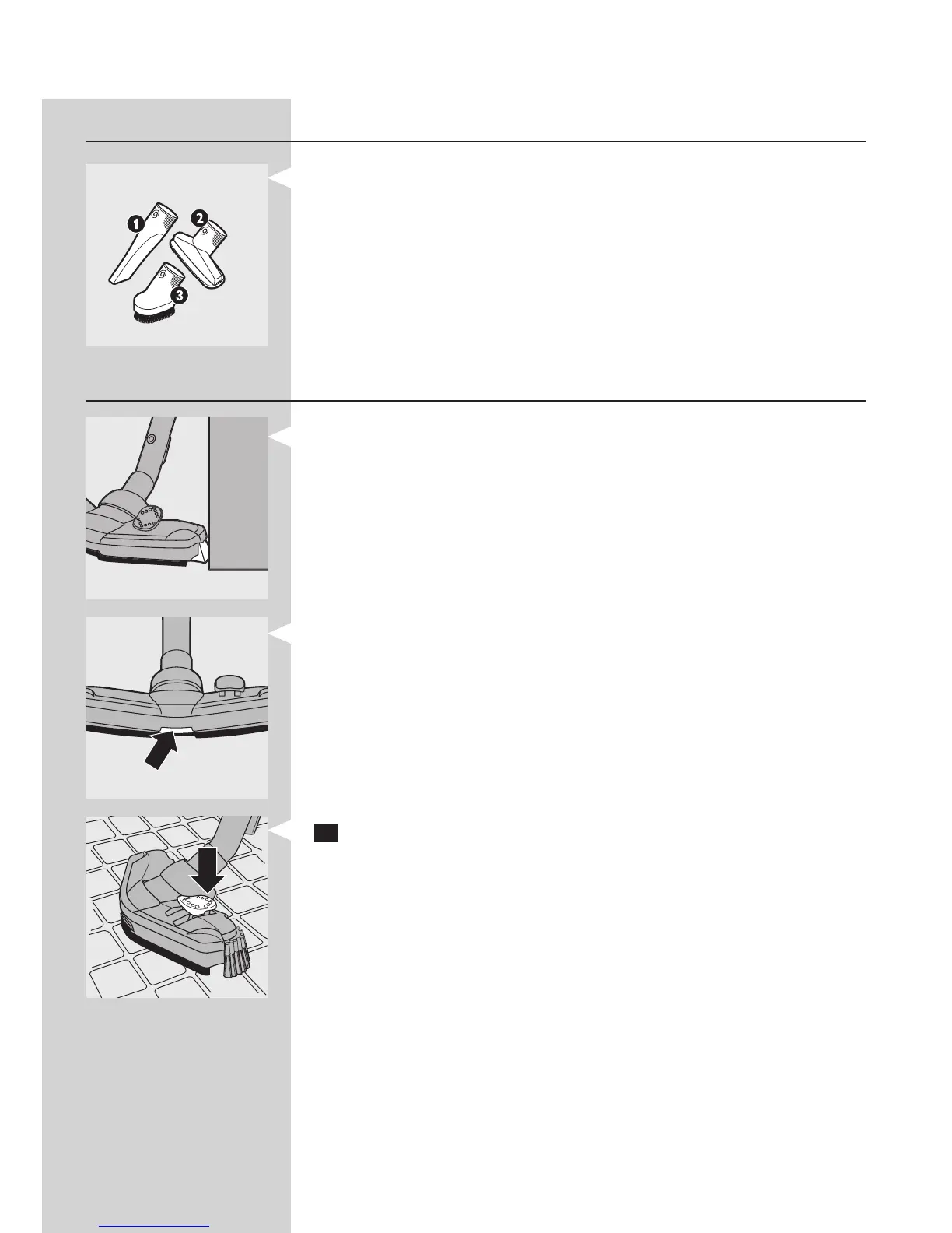 - Pode montar o bico para fendas (1), o bocal para estofos (2) ou a