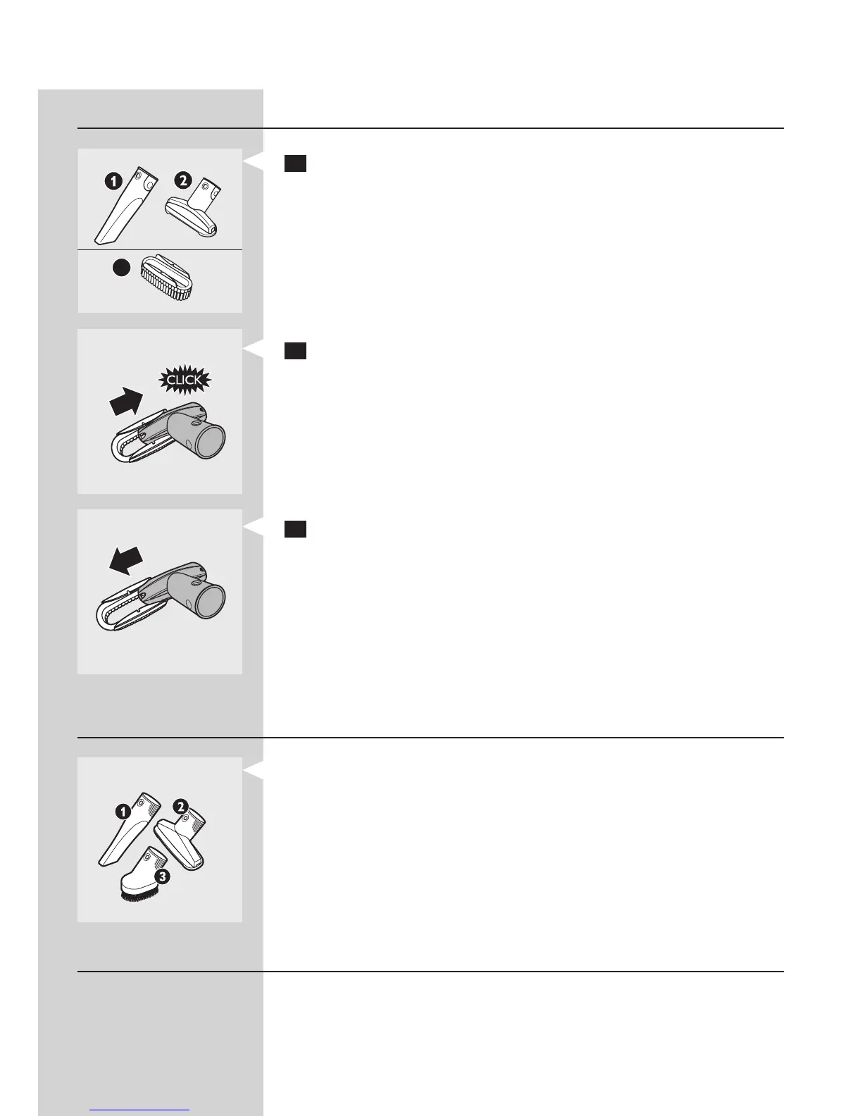 - Aralık temizleme başlığını (1), küçük fırçayı (2) ya da küçük başlığı (3)