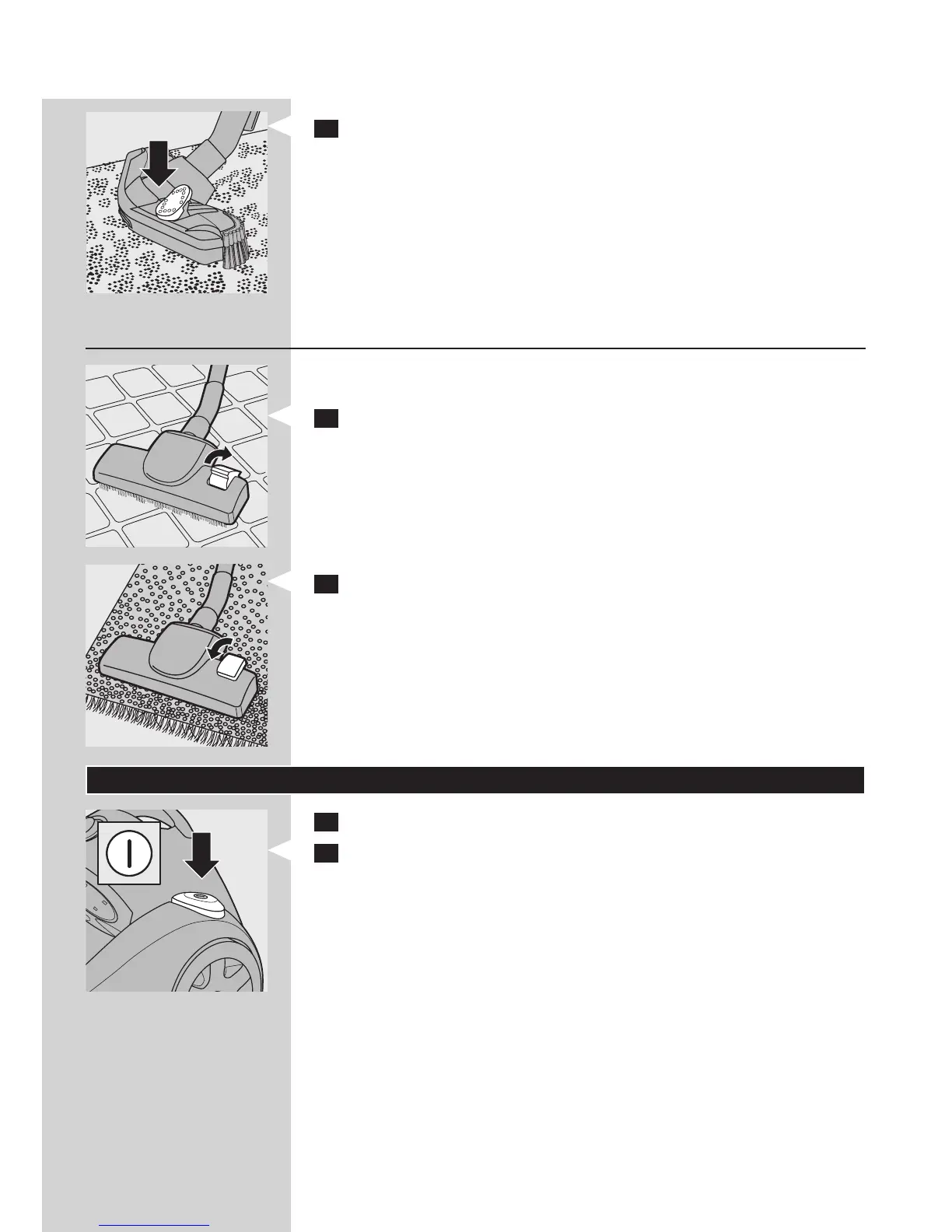 1 Ved støvsugning af hårde gulve trykkes på vippekontakten oven