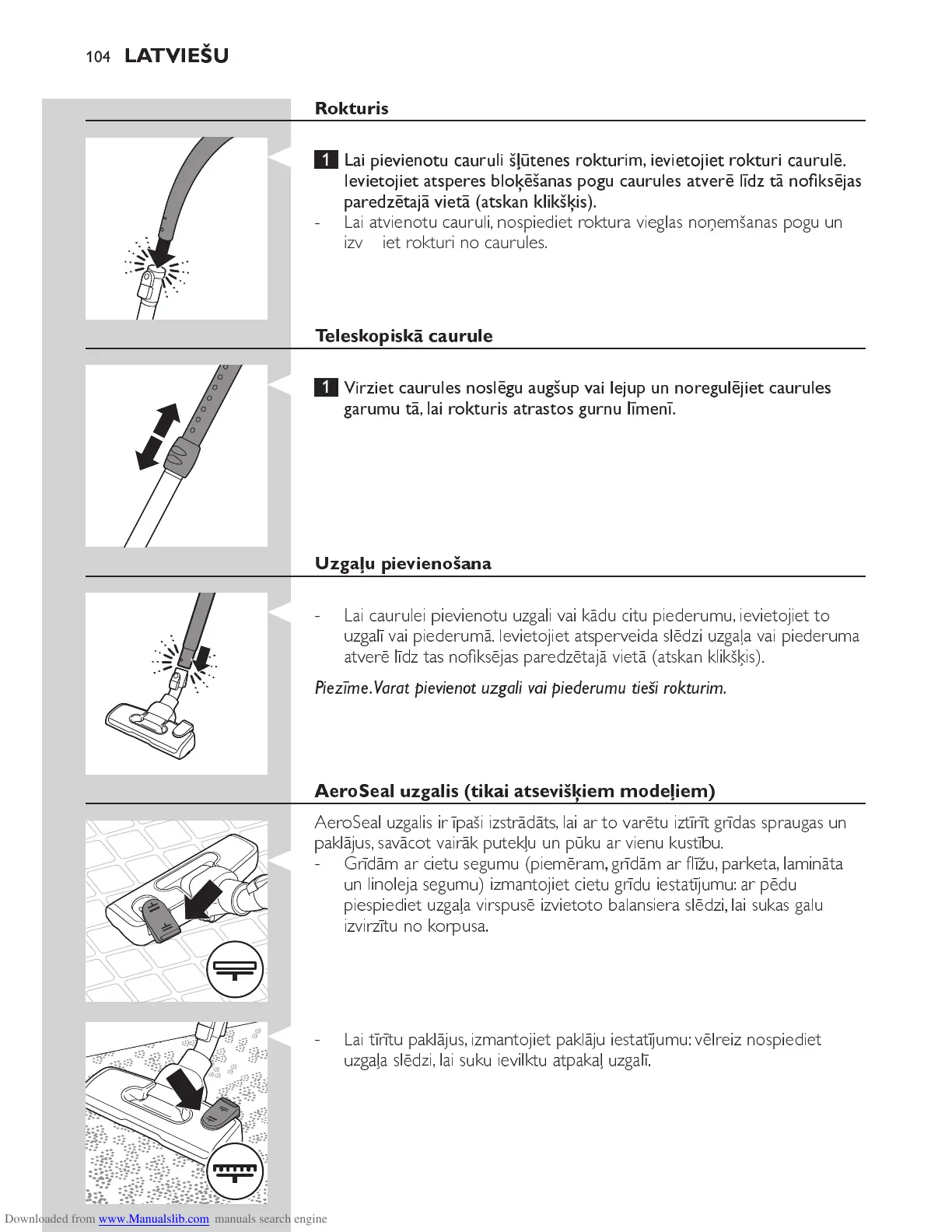 izvelciet rokturi no caurules.