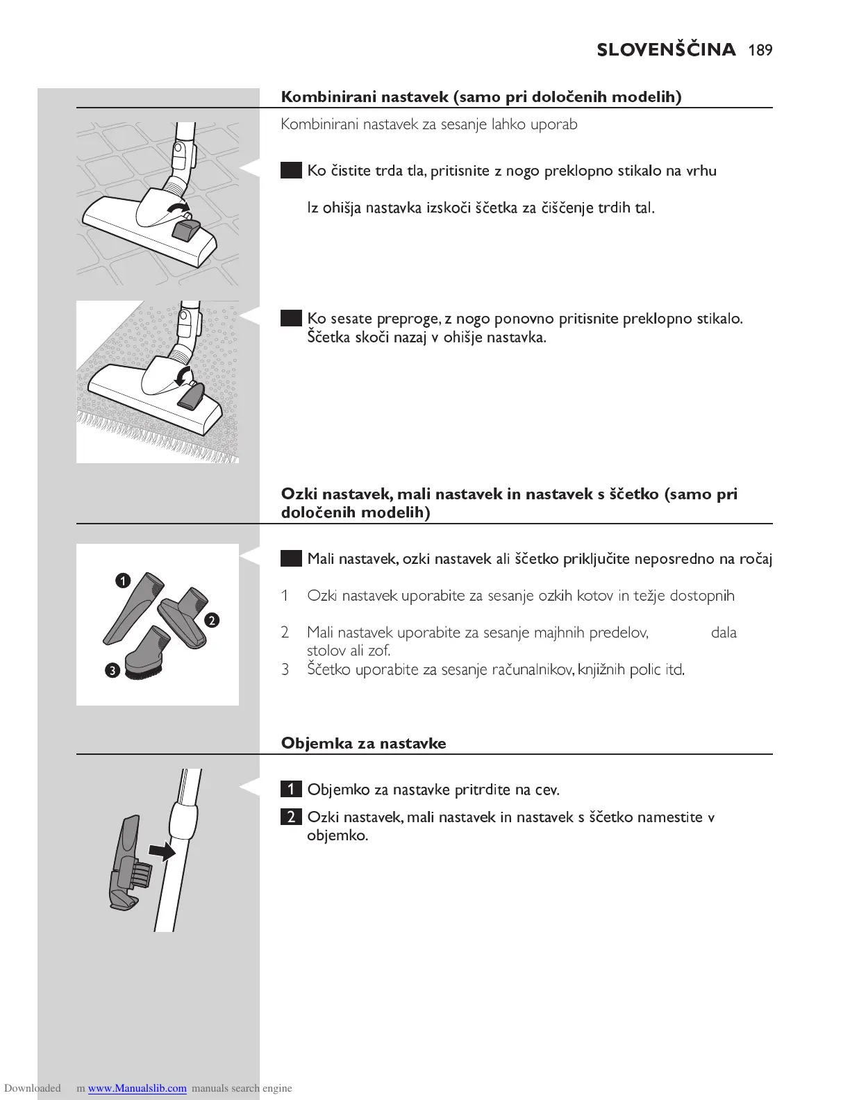 2 Mali nastavek uporabite za sesanje majhnih predelov, npr. za sedala