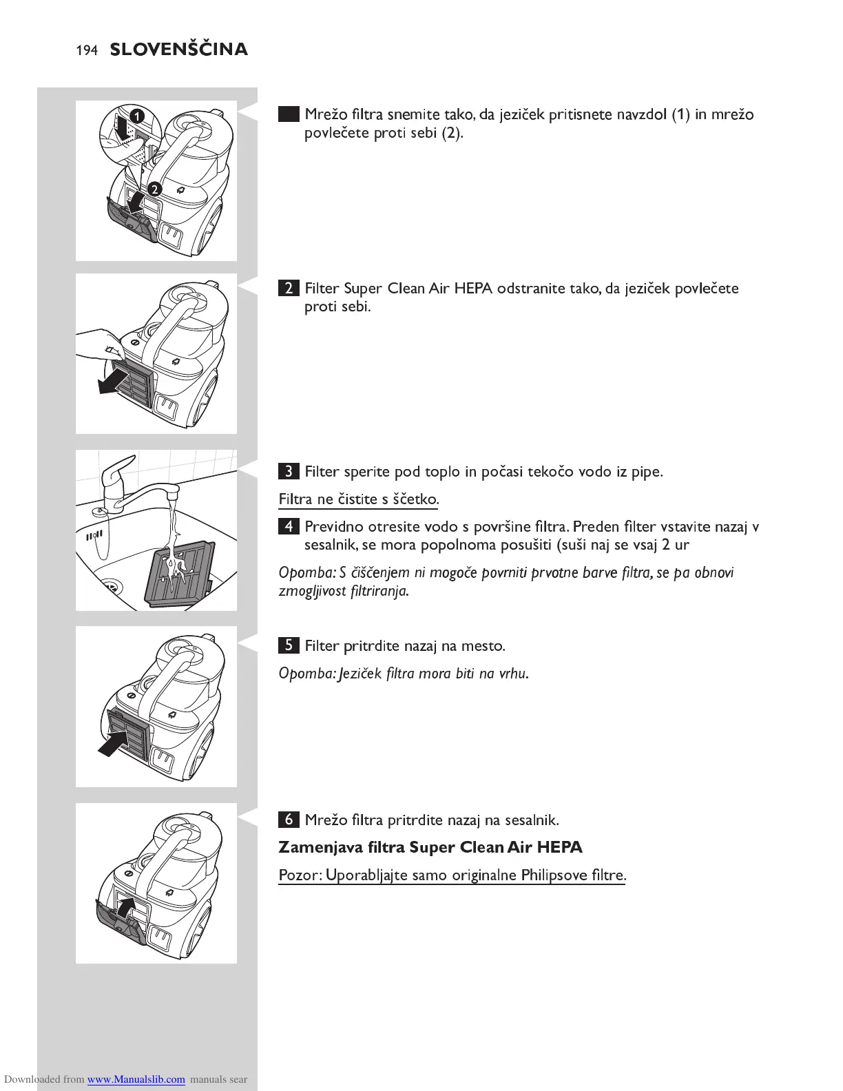 sesalnik, se mora popolnoma posušiti (suši naj se vsaj 2 uri).