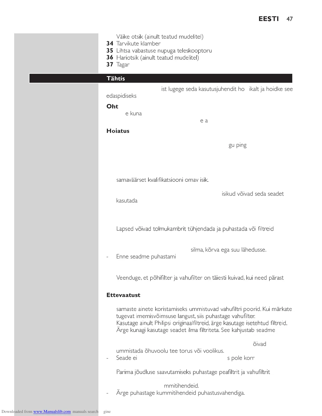 - Ärge imege tolmuimeja sisse suuri objekte, kuna need võivad