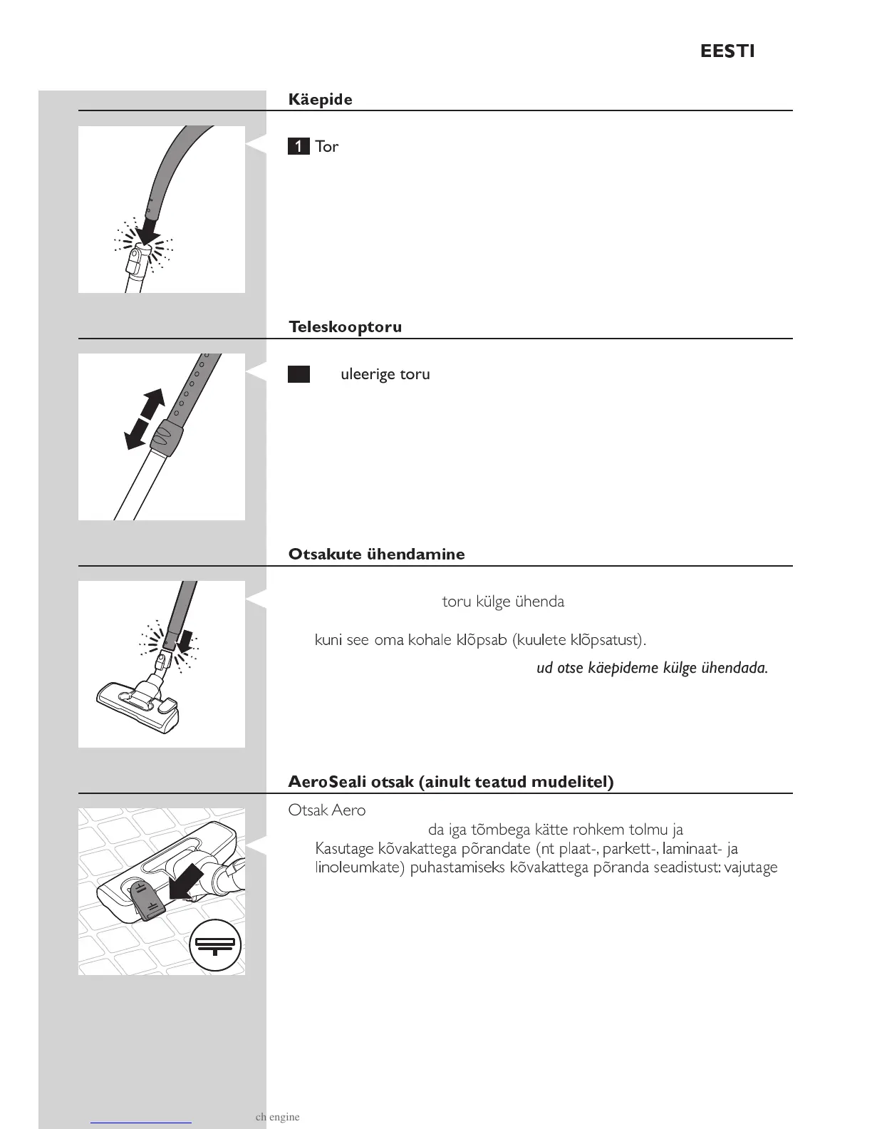 1 Toru vooliku käepideme külge ühendamiseks sisestage käepide