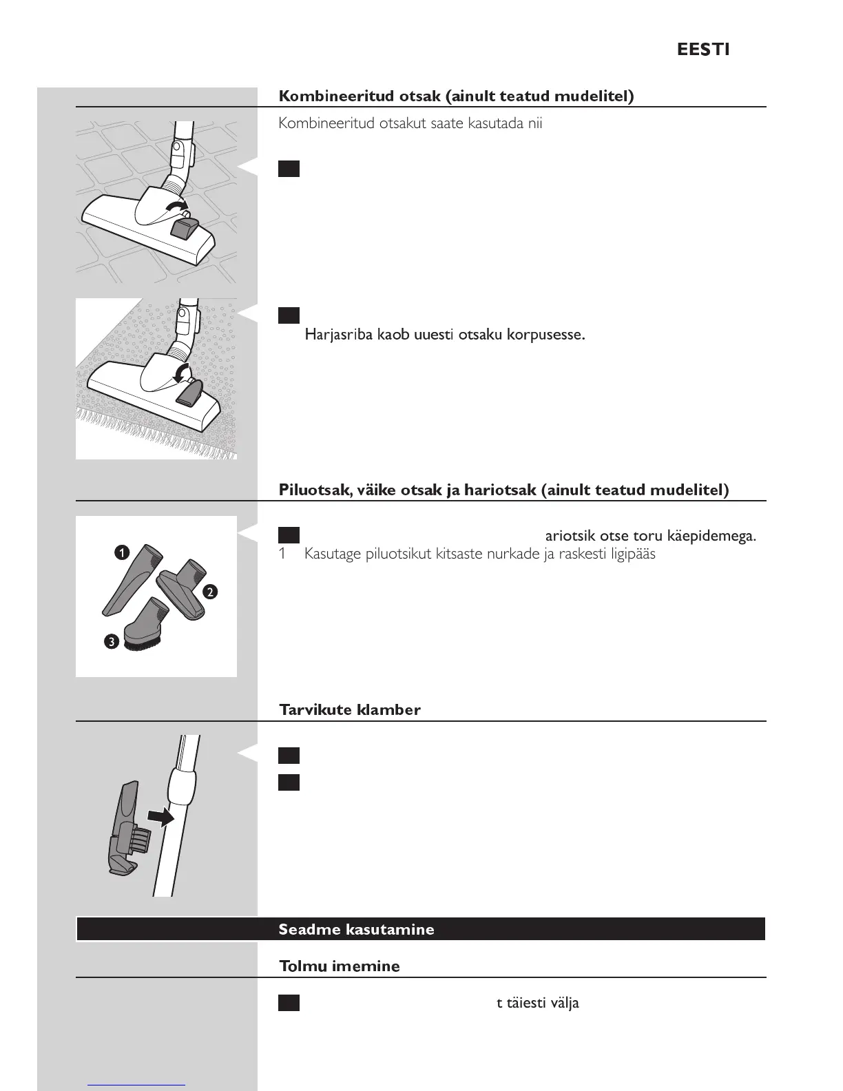 Kombineeritud otsakut saate kasutada nii vaipade kui ka kõvade põrandate