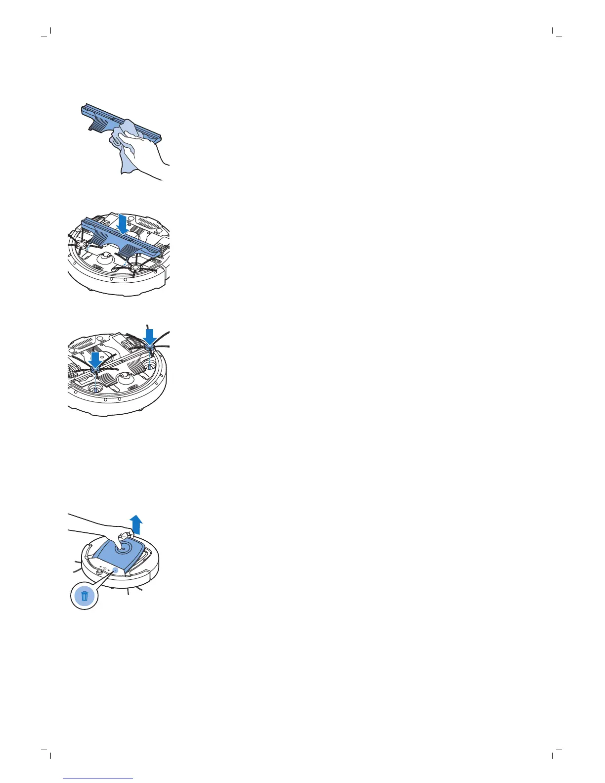 11 Zatlačte bočné kefy späť na hriadele v spodnej časti robota.