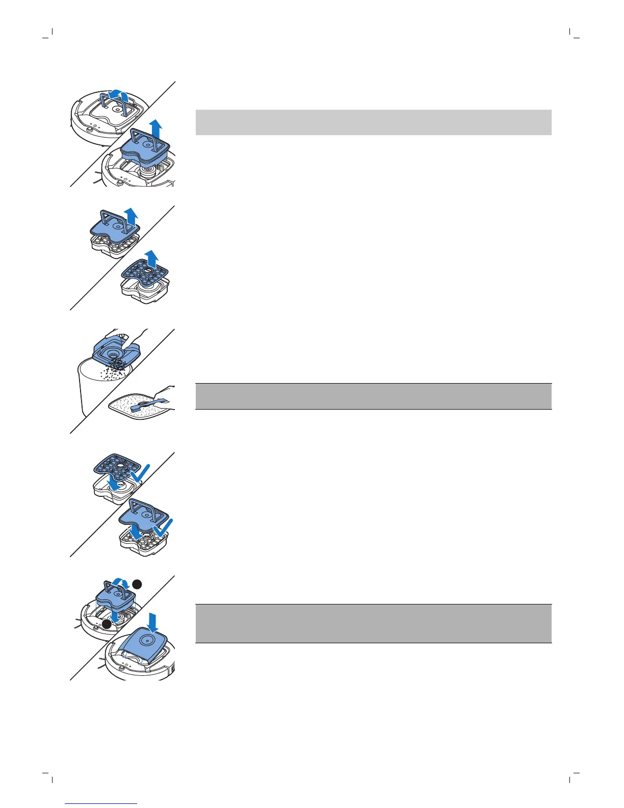 6 Filter vložte späť do zásobníka na prach (1). Na zásobník na prach (2)