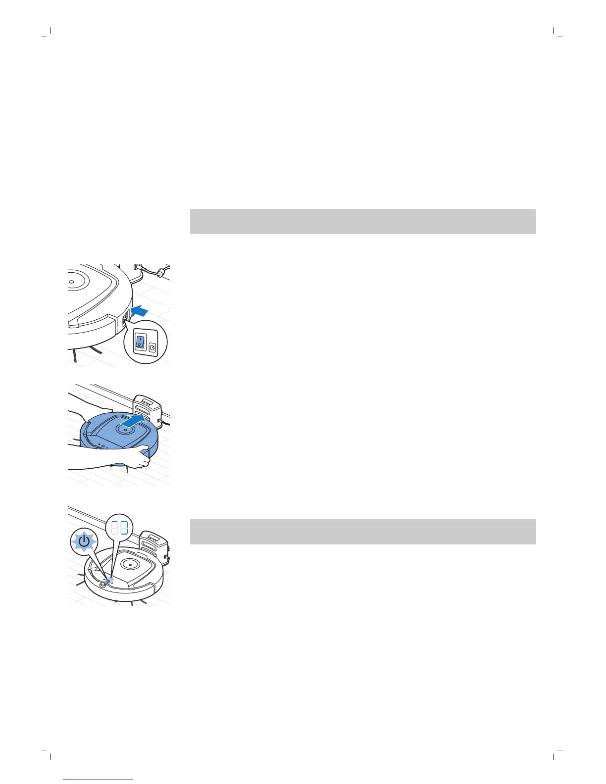 1 Включите робот-пылесос, нажав на переключатель питания.